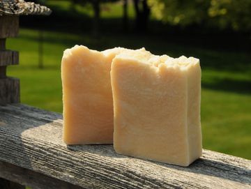 Base oils: Olive, Coconut, Palm, Canola and Castor, plus Stearic Acid, Mango Butter and yogurt.