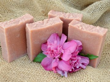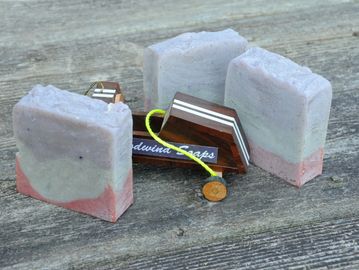 This soap features an essential oil blend featuring: Sweet Orange, Bergamot, Cedarwood, Ylang Ylang, Lavender and Patchouli. It is coloured with Rose Kaolin clay.