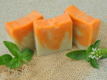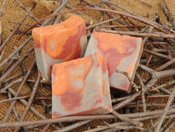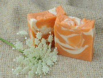 Base oils: Olive, Coconut, Palm. Scented with sweet orange essential oil and orange fragrance.
